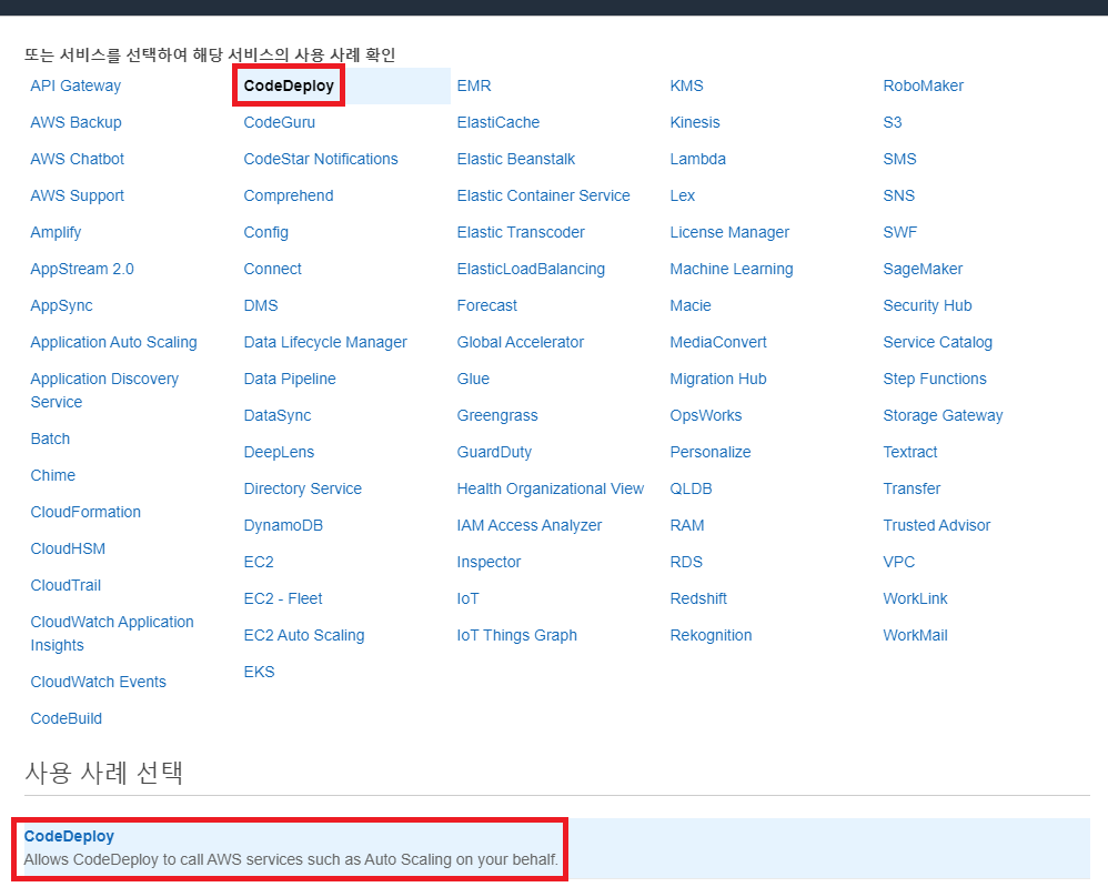 다음과 같이 [CodeDeploy]를 선택한다.