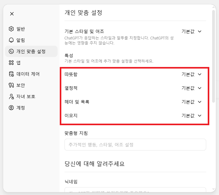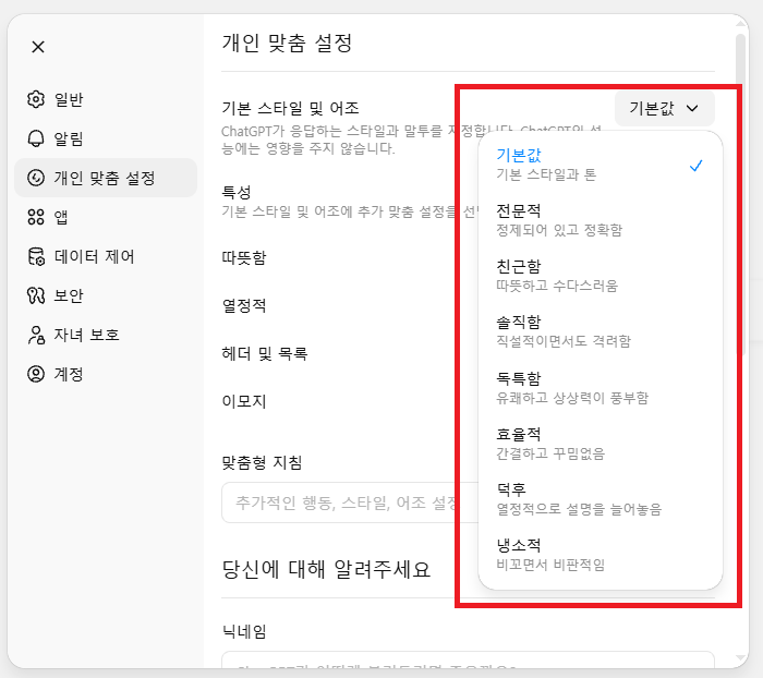 이제는 복잡하게 "친절하게 말해줘", "전문가처럼 설명해줘"라고 매번 명령어를 입력하지 않아도 됩니다. 설정 버튼 하나로 AI의 성격과 말투를 내 입맛대로 조절할 수 있는 시대가 열렸거든요!