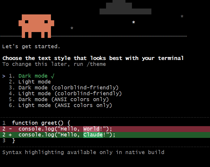 Claude Code가 실행되면 우선 텍스트 스타일 선택 창이 뜹니다. 숫자를 눌러서 원하는 텍스트 스타일을 선택합니다(만약 실행되지 않으면 Claude Code가 설치된 위치를 windows 환경변수 path를 잡아줘야 합니다)