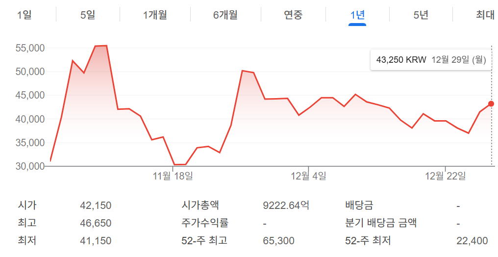 하지만 이익 측면에서는 아직 투자가 필요한 시기입니다. 2024년 말 기준 EPS(주당순이익)는 마이너스 상태이며, 공격적인 R&D 인력 채용과 글로벌 마케팅 비용 집행으로 인해 영업손실이 지속되고 있습니다. 이는 기술 기반 스타트업이 겪는 자연스러운 과정이며, 쿠팡이나 테슬라도 초기에는 막대한 적자를 감수하며 시장 점유율을 넓혔다는 점을 기억할 필요가 있습니다.