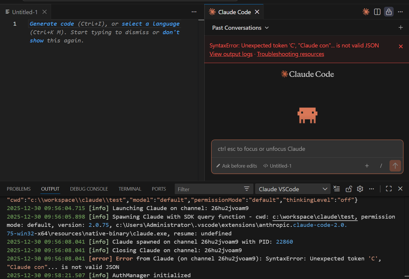 SyntaxError: Unexpected token 'C', "Claude con"... is not valid JSON