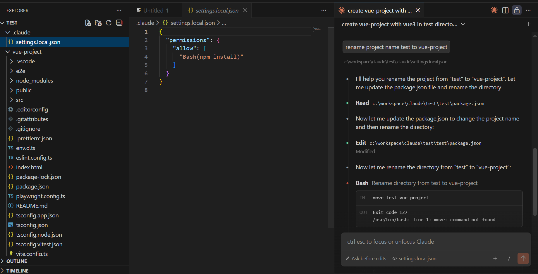 create vue-project with vue3 in test directory