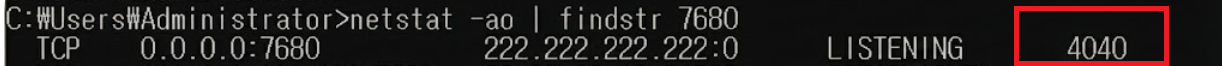 다음과 같은 명령어로 포트번호 기준으로 프로세스를 조회합니다. 명령어 수행 시 제일 우측에 나오는 번호가 프로세스ID 입니다.