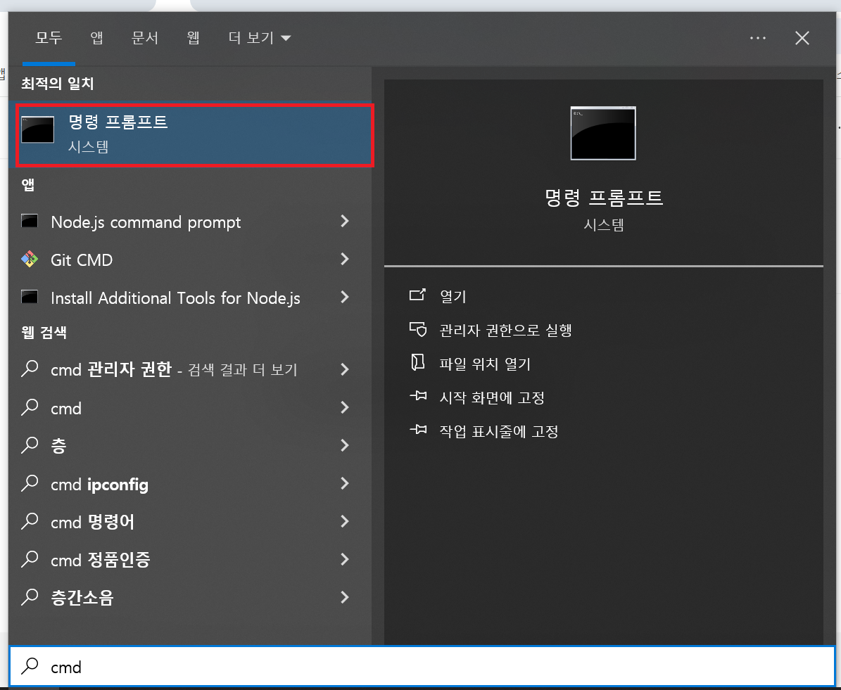 1. 명령 프롬프트에서 CMD 실행