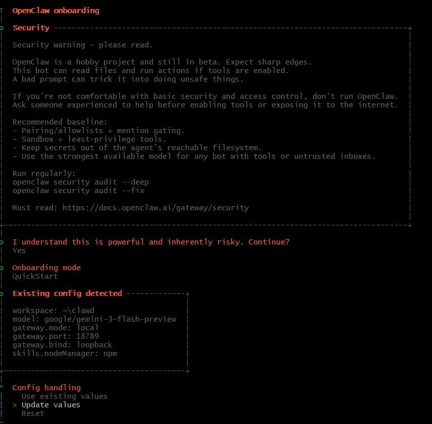 ① 오픈클로 실행 및 Update Values