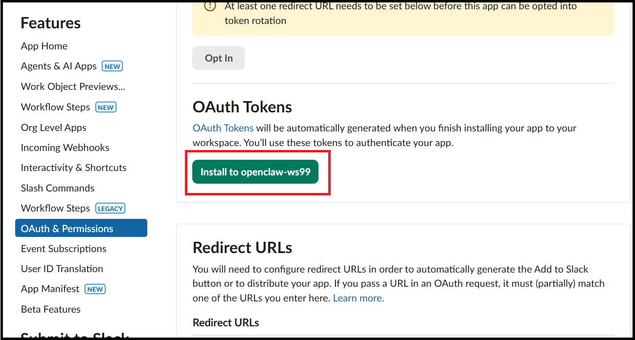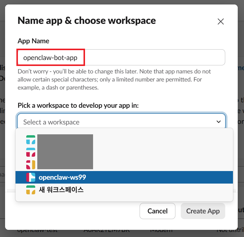 - 오픈클로 봇과 대화할 Slack Workspace