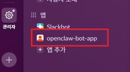 - 오픈클로 봇과 연계되는 Slack App(=슬랙 봇)