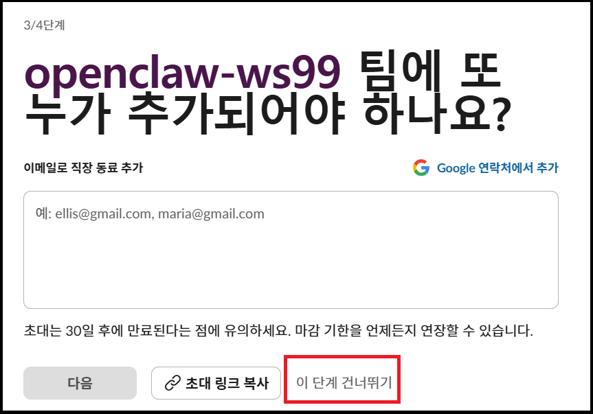 ③ 팀원 초대는 일단 건너뛰기 & 무료버전으로 시작