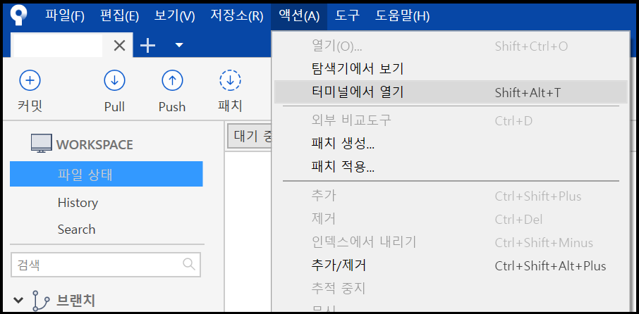 1. 소스트리에서 터미널 열기