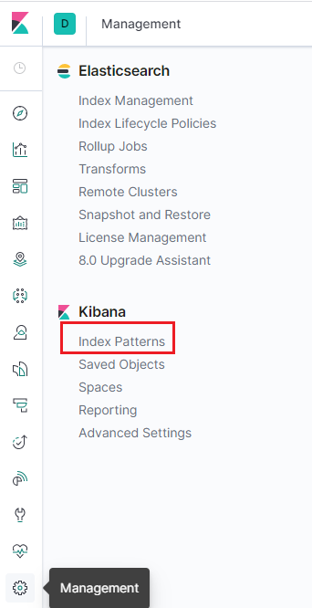 http://[Kibana 호스트 ip]:5601 로 접속한 후 Management > Index Patterns > Create Index Pattern 로 들어가자.