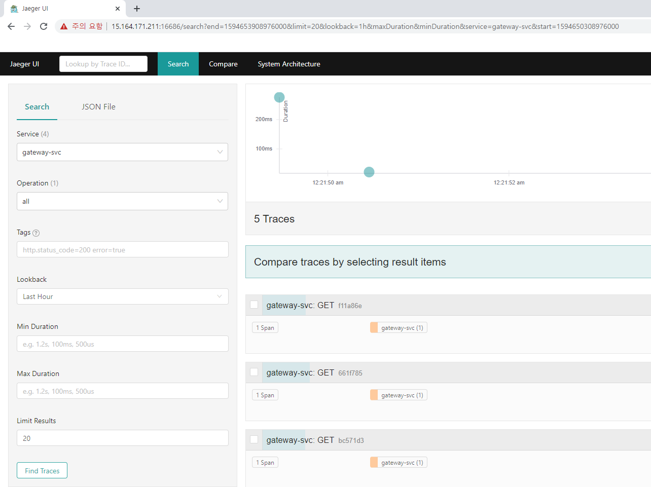 4. Query : 저장소에서 Trace를 검색한 후, UI로 결과를 보여주는 서비스