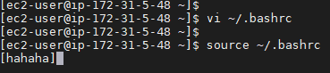 1) ~/.bashrc 파일을 열어서 export PS1="[변경하고 싶은 명령 프롬프트]" 문장을 추가해준다.